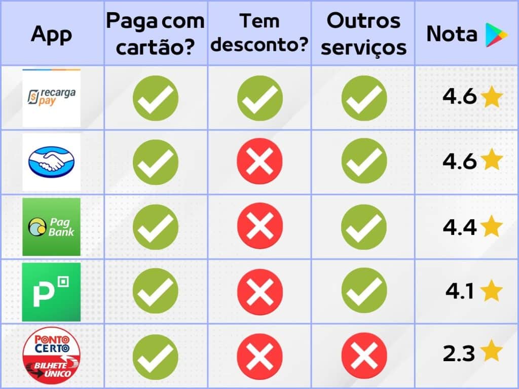 Até o momento, os 5 melhores apps para carregar Bilhete Único disponíveis no mercado são: