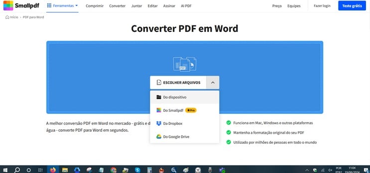 Como converter PDF em Word com o Smallpdf?