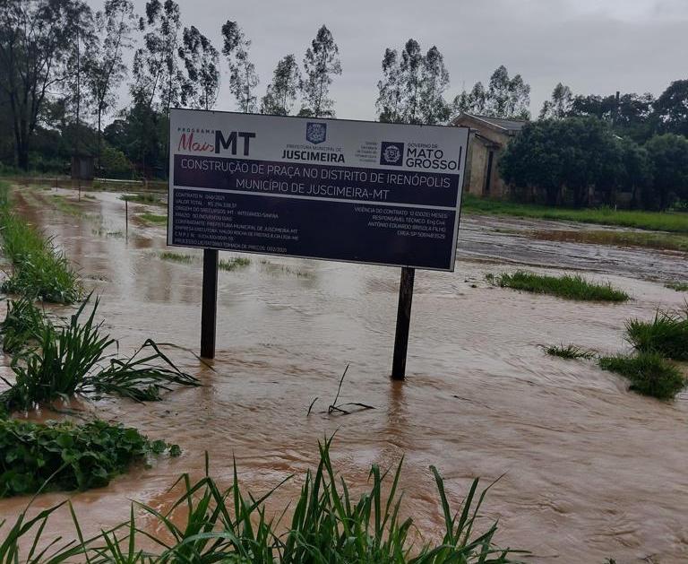 Juscimeira registrou, nessa quinta-feira (23), 120 milímetros de chuva em 1 hora, de acordo com dados da Defesa Civil do município. O volume é equivalente o esperado para o mês todo. Com isso, ocorreram muitos alagamentos, transbordo do lago na sede e alguns danos na pavimentação asfáltica. Em Irenópolis também não foi diferente, a chuva não deu trégua alagando vários pontos do distrito.