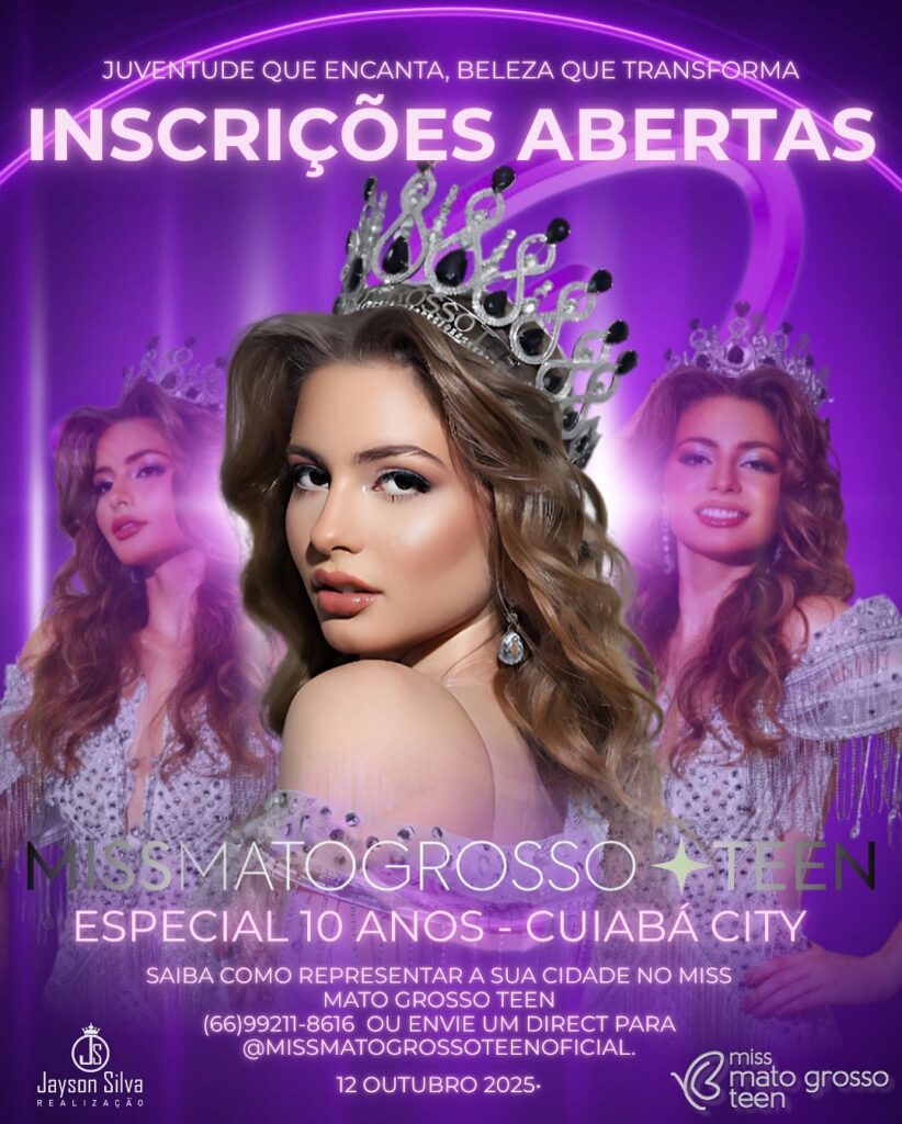 Cuiabá será palco, entre os dias 10 e 12 de outubro de 2025, do maior concurso de beleza infantojuvenil do estado. Candidatas de diversos municípios estarão na capital para disputar os títulos mais cobiçados de Mato Grosso.