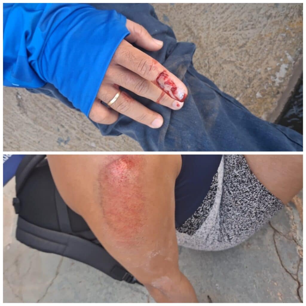 Com o impacto, o casal caiu e sofreu escoriações leves. Ambos foram socorridos pelo Serviço de Atendimento Móvel de Urgência (Samu) e encaminhados à UPA.