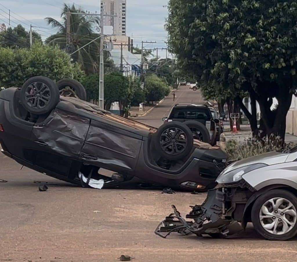 Acidente envolvendo três veículos é registrado na Vila Aurora; carro com gestante capota