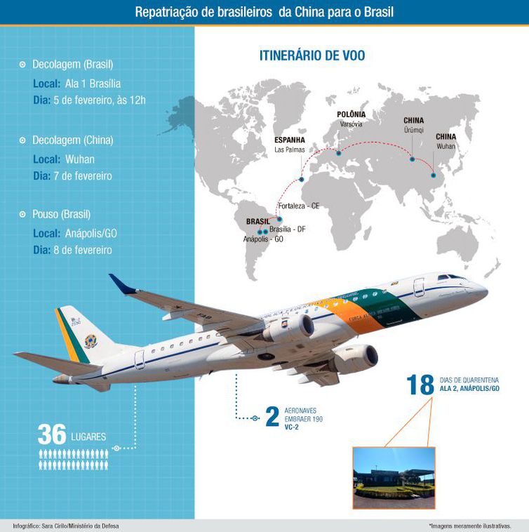 “As pessoas que vão embarcar na China estão sadias e sem evidência da doença. Na chegada ao Brasil, serão feitos exames para identificar quaisquer problemas”, disse o responsável pela missão, brigadeiro Damasceno.