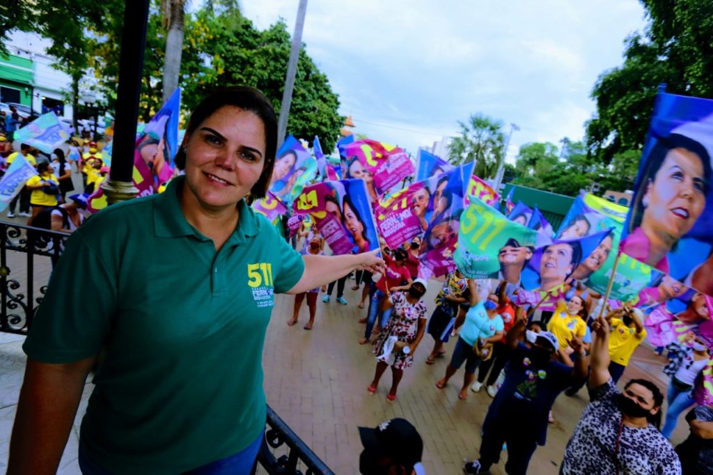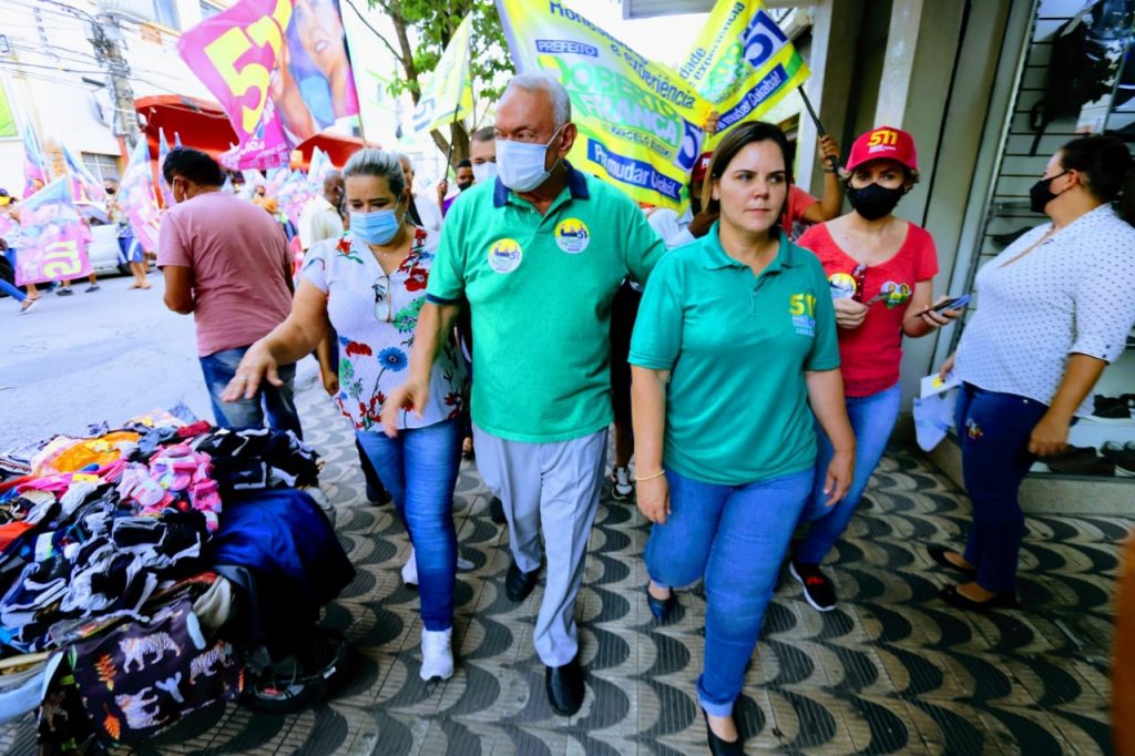 A candidata do Patriota ao Senado, coronel Fernanda, e o candidato a prefeito de Cuiabá, Roberto França, movimentaram o centro da cidade, nesta quarta-feira (11), ao realizarem a caminhada da vitória.