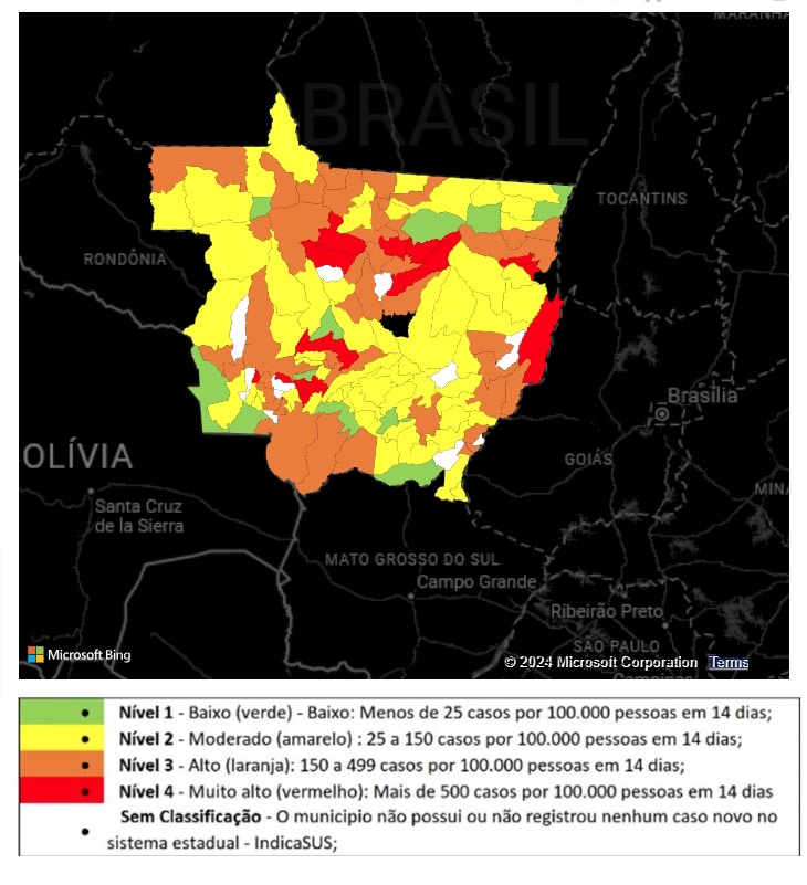 O Painel mostra ainda 46 municípios com classificação de RISCO ALTO.