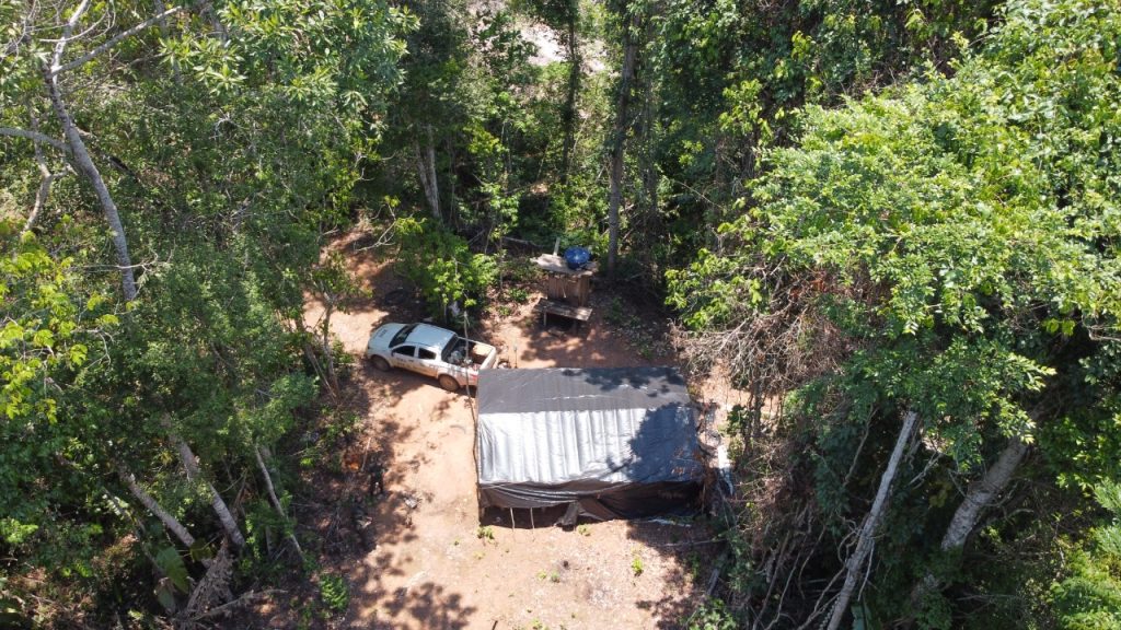 Em uma área, os militares identificaram a execução de pesquisa de extração de minérios – garimpo – onde as áreas degradadas foram embargadas.