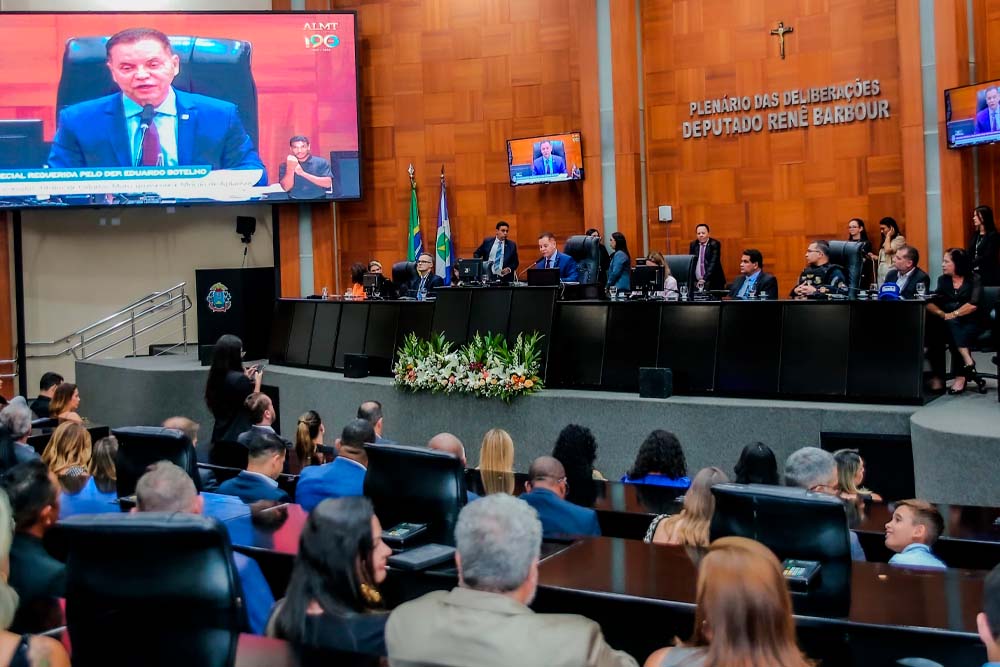 A Assembleia Legislativa de Mato Grosso realizou, nesta segunda-feira (1º), uma sessão especial marcada por homenagens, reconhecimento público e emoção. Proposta pelo deputado estadual Eduardo Botelho (União Brasil), a cerimônia concedeu Títulos de Cidadão Mato-grossense, Comendas, Moções de Aplauso e Moções de Louvor a dezenas de personalidades que contribuem para o desenvolvimento do Estado em diferentes áreas, da segurança pública ao esporte, da cultura ao serviço comunitário. Entre os homenageados estavam atletas, profissionais da segurança e justiça, lideranças comunitárias, servidores públicos, empresários e cidadãos que se destacaram por trajetórias de superação e contribuição social.
