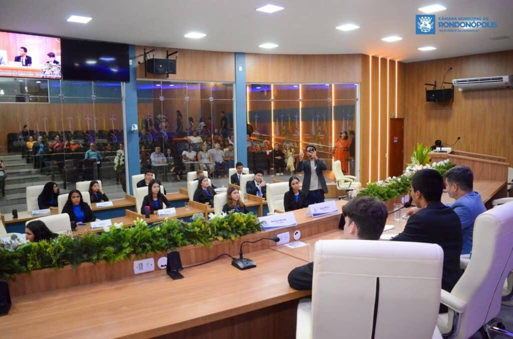 A Câmara Municipal de Rondonópolis realizou, na tarde desta terça-feira (16), a Solenidade de Encerramento da edição 2025 do projeto Vereadores Mirins. A sessão solene marcou o fim das atividades do ano e foi acompanhada pela entrega de Moções de Congratulação a personalidades do município, reconhecendo contribuições relevantes para a comunidade.
