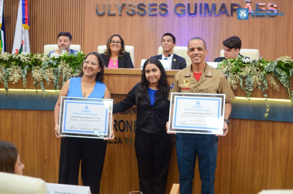 Entre as homenageadas, a jornalista Bruna Rodrigues recebeu Moção de Congratulação indicada pela sobrinha e vereadora mirim Bethânia Mel.