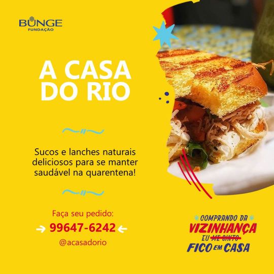 Durante o período de isolamento social, no contexto da pandemia do novo coronavírus, a Fundação Bunge, o Sindicato do Comércio Varejista e a Câmara de Dirigentes Lojistas de Rondonópolis promovem a campanha “Comprando da Vizinhança, eu fico em casa”, que incentiva e apoia o consumo local sem a necessidade de sair de casa, por meio de compras por telefone e internet.