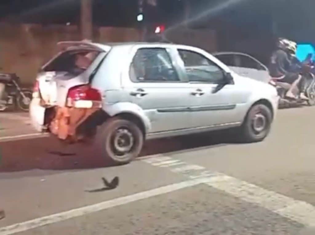 Um motociclista bateu fortemente na traseira de um veículo na noite deste sábado (14) na região central de Rondonópolis. Apesar da violência da colisão, o homem teve apenas algumas escoriações. A família que estava no carro não se feriu.