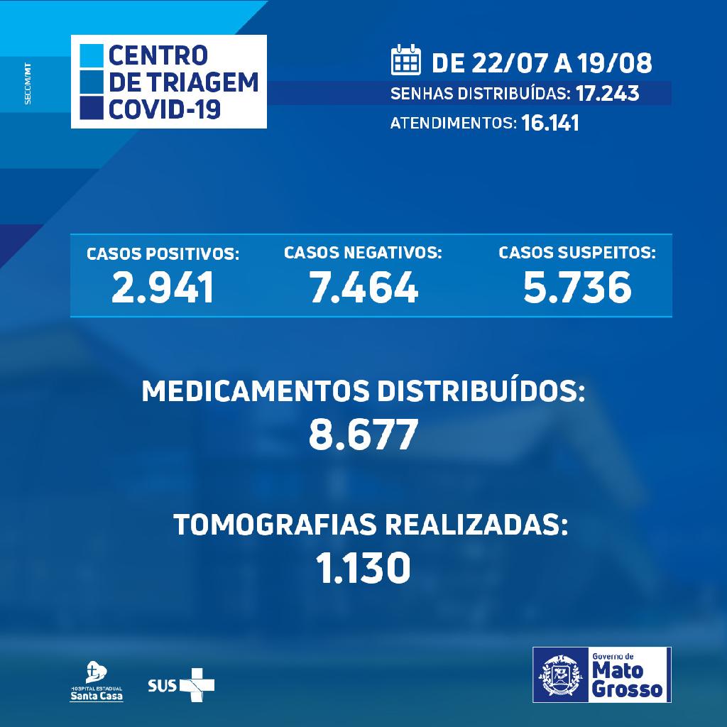 O Centro de Triagem Covid-19 atendeu um total de 16.141 pacientes, desde que entrou em funcionamento no dia 22 de julho. A unidade montada na Arena Pantanal tem auxiliado os municípios da Baixada Cuiabana na atenção básica para o enfrentamento da Covid-19.