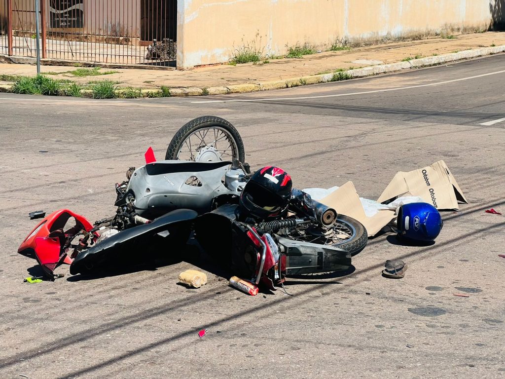 As informações iniciais apontam que o motociclista seguia pela Rua Poxoréo e teria invadido a Avenida Bandeirantes, que é a via preferencial, colidindo na lateral da Fiorino. Com o impacto, a Biz ficou completamente destruída.