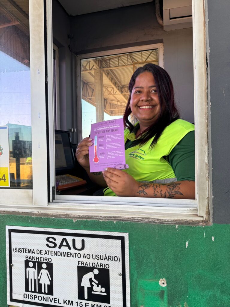 Concessionária Morro da Mesa promove ações do Agosto Lilás com palestra e distribuição de panfletos na MT-130