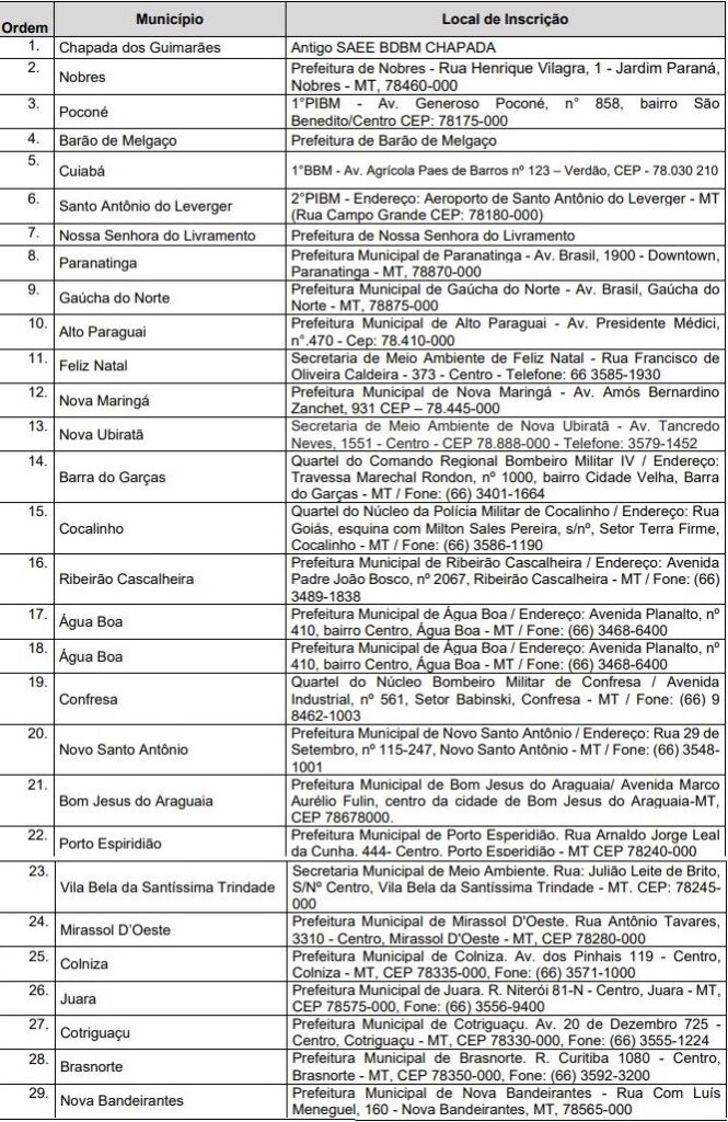 O Corpo de Bombeiros Militar de Mato Grosso (CBMTM) publicou nesta segunda-feira (27.06) o edital do processo seletivo para contratação de 180 brigadistas temporários para as ações de prevenção e combate aos incêndios florestais.