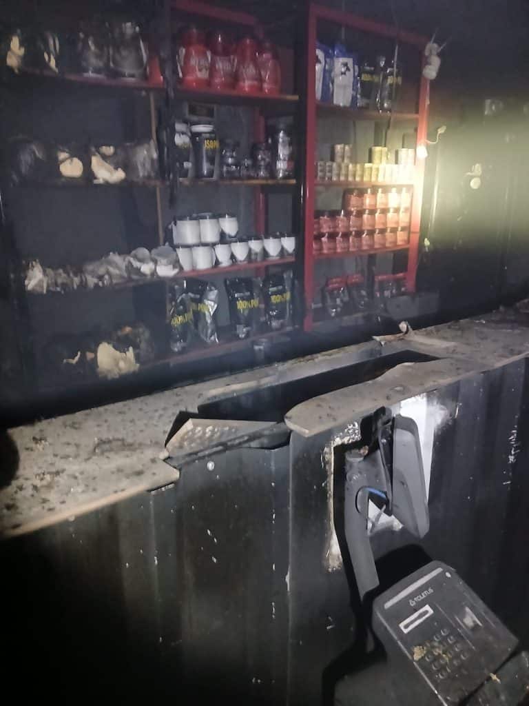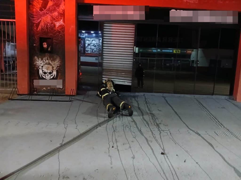 A equipe realizou o combate extinguido totalmente as chamas. Conforme informado, o fogo veio do forro e recaiu nos tapetes e atingiu a prateleira de madeira onde produtos estavam armazenados. Parte dos aparelhos da academia também foram danificados.