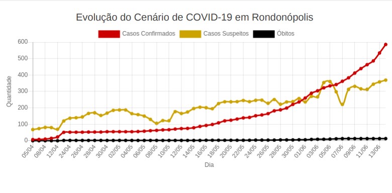Isso mostra que a transmissão da Covid em Rondonópolis passou, em uma semana, da média de 20 casos por dia, chegando agora a casa dos 40. Com isso, os números subiram no total, entre ontem e hoje, de 534 casos confirmados para 586.