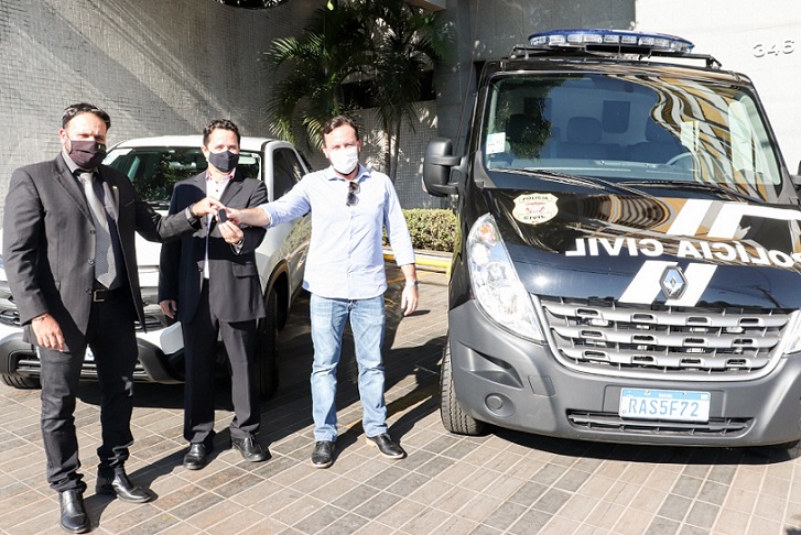 O deputado estadual Delegado Claudinei (PSL) formalizou a entrega de dois veículos que foram adquiridos, por meio de emendas parlamentares, no valor total de R$ 400 mil, destinadas à Polícia Judiciária Civil de Mato Grosso (PJC), na manhã desta quarta-feira (26), em Cuiabá. As aquisições vão beneficiar o município de Rondonópolis e região, sendo um Fiat Toro para a Delegacia Regional e um furgão da marca Renault para transportar presos que será destinado à 1° Delegacia de Polícia Civil (DP) – Plantão.