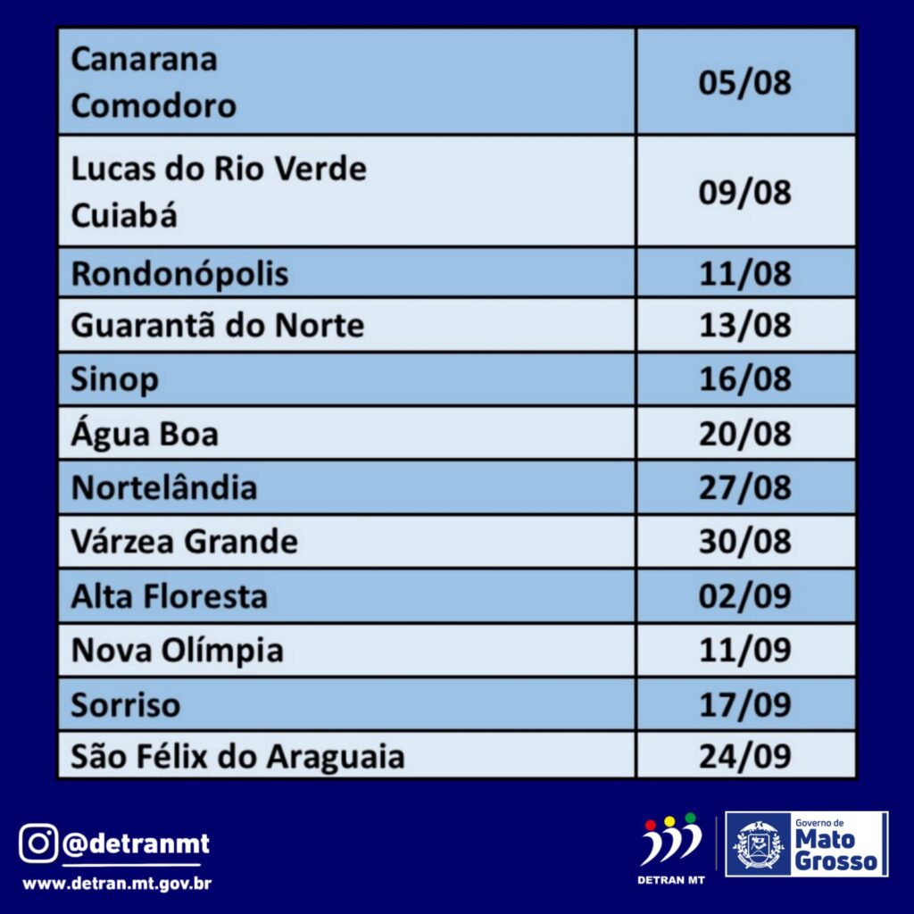 Já em Várzea Grande, o retorno da aplicação das provas categoria B está previsto para início em 30 de agosto.