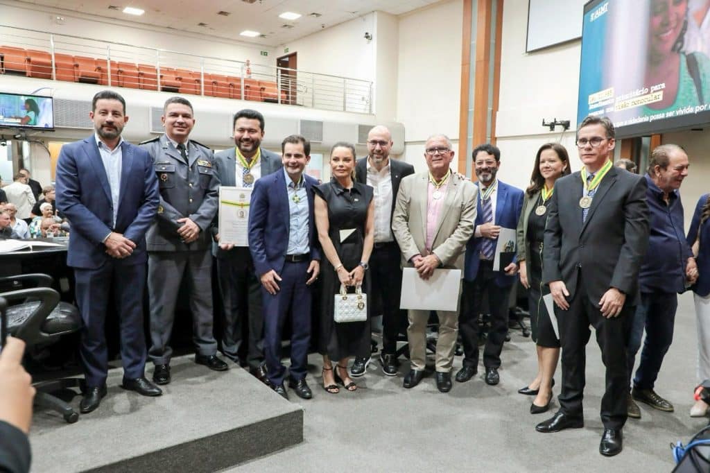 A cerimônia homenageou personalidades com Títulos de Cidadão Mato-grossense e outras honrarias. O deputado lembrou a Comenda Filinto Muller entregue à primeira-dama em 2024, destacando seu trabalho social. “É uma honra ter a presença da nossa primeira-dama de Estado, Virginia Mendes, que no ano passado foi homenageada pelos inúmeros trabalhos sociais e dedicação à população mato-grossense. Como diz o nosso amigo Fábio Garcia, ela é o coração do nosso estado”, disse o deputado.