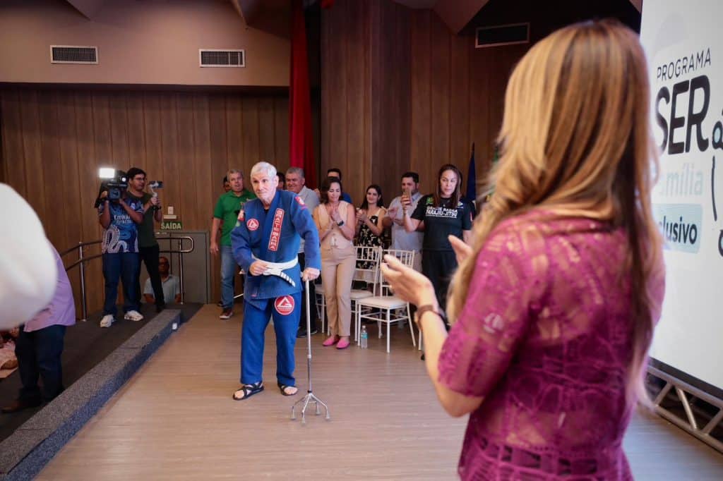 Idealizadora do programa SER Família Inclusivo, a primeira-dama Virginia Mendes foi recebida pelos alunos com mensagens de carinho e reconhecimento por sua atuação e atenção junto ao paradesporto, que ganhou visibilidade após uma visita que ela fez à Academia Gracie Barra no mês de julho deste ano. O presidente da Federação Brasileira de Jiu-jitsu Paradesportivo (FBJJP), Elcirley Luz, falou sobre a importante participação da Madrinha e Embaixadora Mundial do Parajiu-jitsu e das mudanças na rotina dos paratletas depois que ela abraçou o esporte.