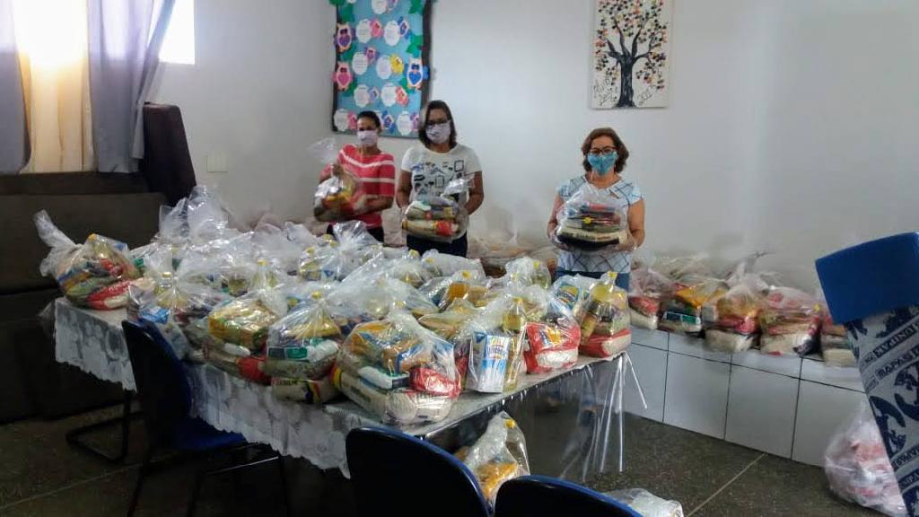 A preparação dos kits contou com a colaboração de três apoios administrativos da escola. Entre eles, a merendeira Jurene Maria, que se sentiu importante nesse processo colaborativo. “É um trabalho que a gente vê a satisfação de quem recebe o kit. Parece pouco, mas vai ajudar muita gente, muitas famílias. A satisfação está até na hora de escolher entre carne ou frango”, comenta.
