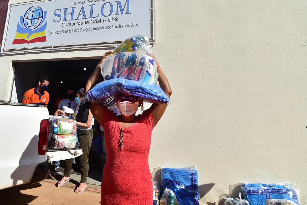 Famílias de Cuiabá são beneficiadas com cestas básicas e cobertores