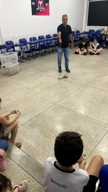 Além de aprenderem sobre os cuidados e procedimentos em caso de encontros com esses animais, os alunos puderam até mesmo tocar nas serpentes com segurança, uma experiência enriquecedora e inusitada.