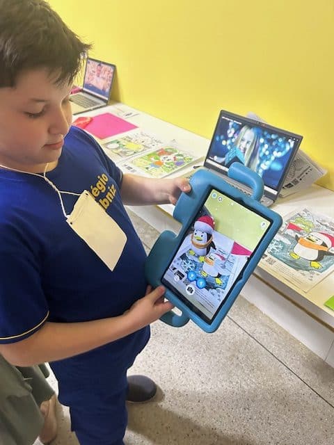 Outro trabalho apresentava a chamada realidade aumentada, a partir de um desenho e uma tela de tablet, o observasdor poderia ver a mesma imagem aumentada e em 3D.