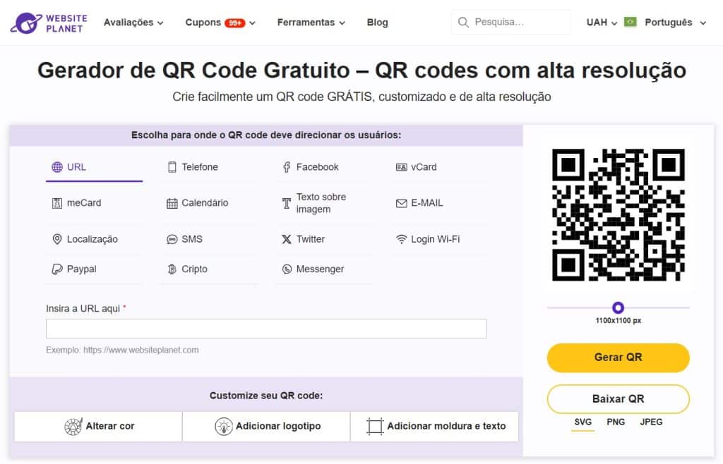 É gratuito e focado no básico em termos de funcionalidade e facilidade de uso para gerar QR code.