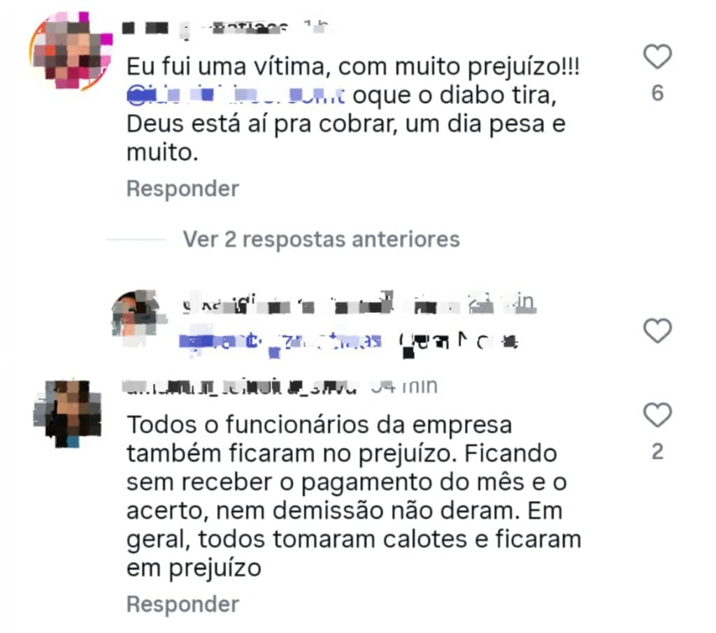 Além dos prejuízos financeiros dos clientes que, em alguns casos, ultrapassam cifras milionárias , há também relatos de que os próprios colaboradores da empresa não foram informados sobre o fechamento e não receberam seus direitos trabalhistas. As informações, até o momento, são extraoficiais.