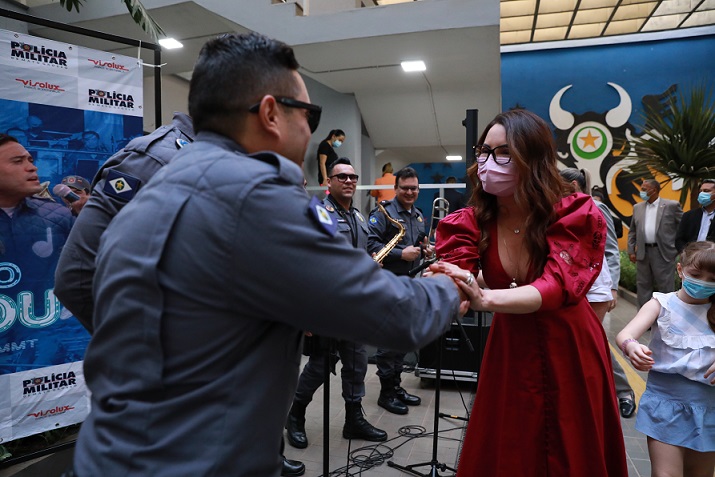 “Pra mim e pra todos nós mato-grossenses é uma honra ver vocês que representam as nossas forças de segurança, nossa gloriosa Polícia Militar! Senti muito orgulho em ver vocês explodindo nas redes sociais e agora cantando aqui para todos nós. Como cantores e como membros da nossa polícia vocês estão nos dando muito orgulho,” destacou o governador, ao agradecer pelo trabalho dos profissionais que além de garantirem a segurança do Estado, também são parceiros nas ações sociais do Governo.