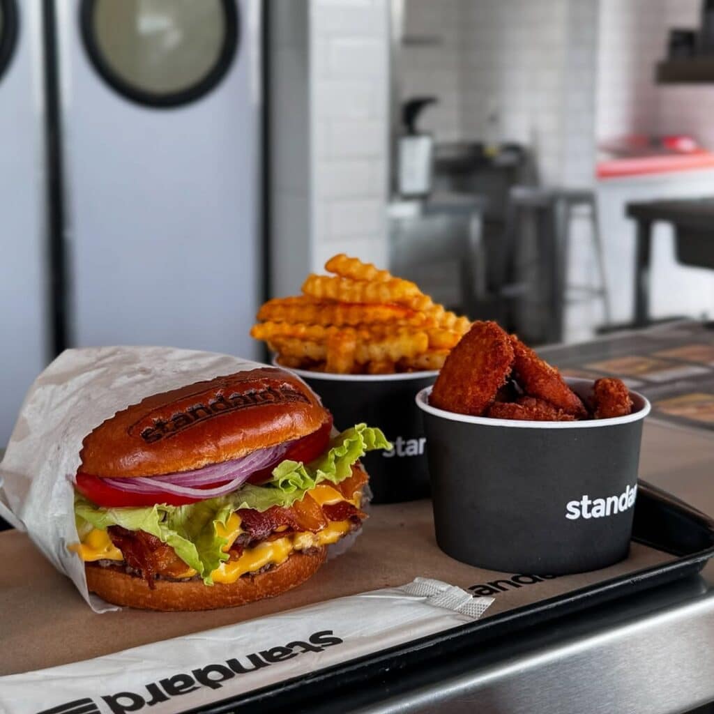 Além das opções de hambúrgueres, a Standard conta com hot dogs no estilo americano, versões vegetarianas e acompanhamentos que já viraram queridinhos, como a batata frita com cheddar. Tudo servido no pão brioche, com o molho especial da casa, marca registrada da Standard.