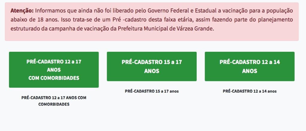 Após reunião de avaliação com a área técnica da Saúde Pública de Várzea Grande, o prefeito Kalil Baracat e o secretário Gonçalo Barros, anunciaram a decisão de abrir preventivamente o pré-cadastro para novas faixas etárias abaixo dos 18 anos que já está desde o final de semana passada sendo vacinados em Várzea Grande a segunda maior cidade de Mato Grosso.
