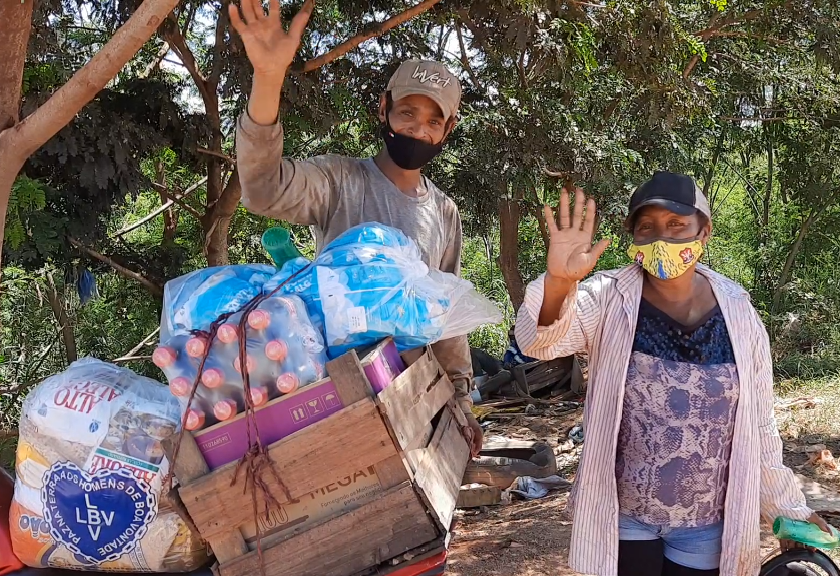 As famílias beneficiadas fazem parte da Cooperativa de Trabalho dos Catadores e Produtos de Materiais Recicláveis (Coopemar). Lucimar Ferreira de Souza, tem 57 anos e é catadora de recicláveis há três anos: “Se não fosse esta cesta íamos passar fome. Esta cesta que vocês dão tem melhorado nossa vida. Se não fosse vocês nós tínha[mos] passado fome, não só nós… mais muita gente que precisa aqui no lixão. Recebi cesta básica, o sacolão, kit de limpeza, refrigerante, biscoito. É uma benção…chegou em uma boa hora. Agradeço primeiro a Deus e a vocês que ajudam nós aqui no lixão”, agradeceu.