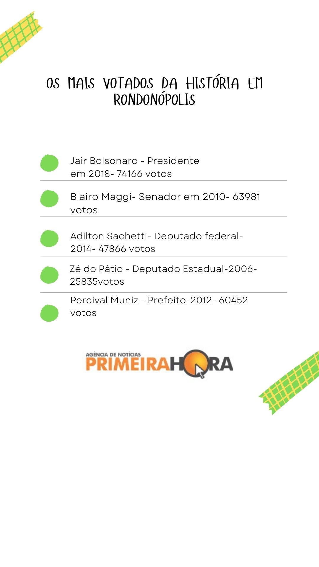 No último processo eleitoral para escolha de presidente, senador e deputados, além de Bolsonaro e Sachetti, os mais votados para presidente e senador, a vereadora Marildes Ferreira com 19194 votos foi a mais votada para federal e Claudinei Lopes, o delegado Claudinei com 17.176 foi o mais votado para estadual.