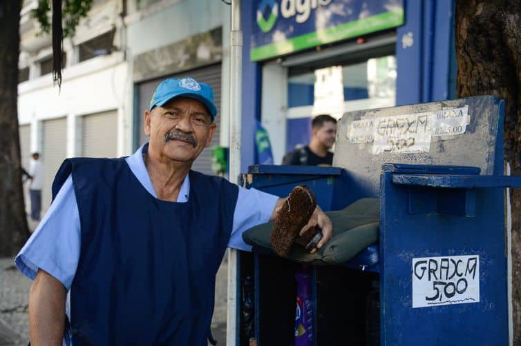 “Só por causa da pandemia, fiquei quase dois anos em casa. Depois fiquei doente, sem poder fazer nada. Fiquei três anos e pouco sem trabalhar. E aí foi atrasando tudo. Minha mulher sozinha pagando tudo: água, luz, telefone. O que eu mais atrasei foi a conta de água. Na hora que sair o benefício [da Previdência], eu vou conversar com a concessionária e parcelar. Não quero ficar devendo nada a ninguém. Não tenho essa índole de mau pagador”, conta o engraxate que retomou recentemente seu ofício.