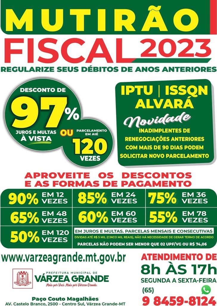 Como Participar do Mutirão Fiscal – Durante o período do Mutirão Fiscal, a Prefeitura de Várzea Grande oferecerá diversas opções de atendimento: