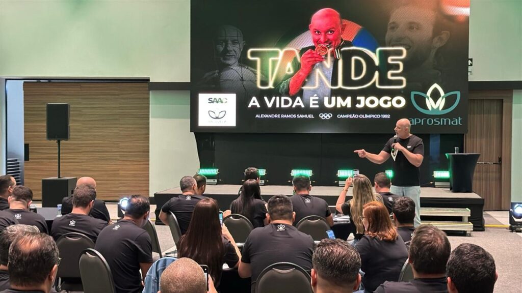 Do conteúdo técnico para uma mensagem motivacional, com ídolo do vôlei Tande, medalhista olímpico de ouro, e único jogador de vôlei campeão mundial na quadra e na praia, Rei da praia, com muito carisma destacou as semelhanças e aprendizados da vida nas quadras e a busca pelo máximo desempenho. “Ao timaço de associados da Aprosmat foi um prazer ter este momento com todos. Vocês viram como eu trabalho, que não dá pra dar desculpas, a gente tem que entregar o nosso melhor todos os dias. Esse é o diferencial do campeão para os demais. No agro, no esporte, onde a gente estiver, os desafios estão batendo na porta. O mundo está mudando, com guerras, taxações, dolarização, e aonde a gente quer estar? Vocês são o topo da cadeia do agro, fazem a diferença. A importância de entregar o melhor todos os dias, esse é o diferencial do que vem pela frente”, provocou. O evento aconteceu nas dependências do Malai Manso Resort, Chapada dos Guimarães (MT).