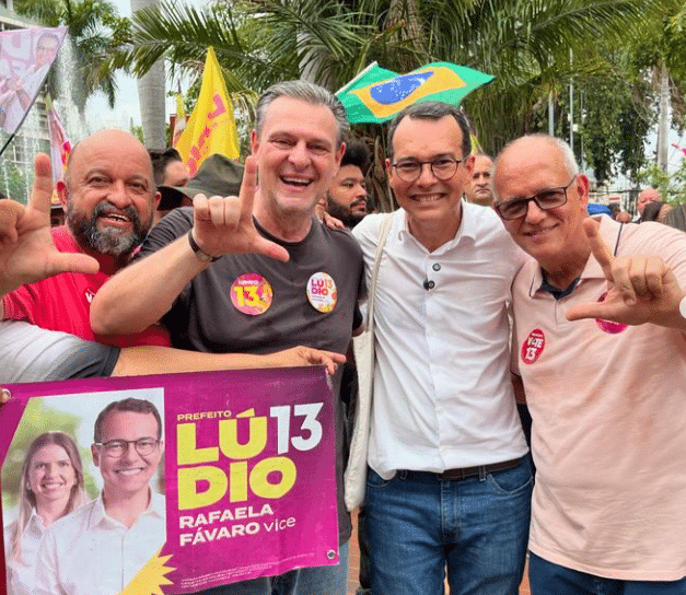 Pátio ao lado do candidato a prefeito Lúdio, derrotado em Cuiabá , e o ministro Fávaro e o “Kamikaze” Eliseu Taxista