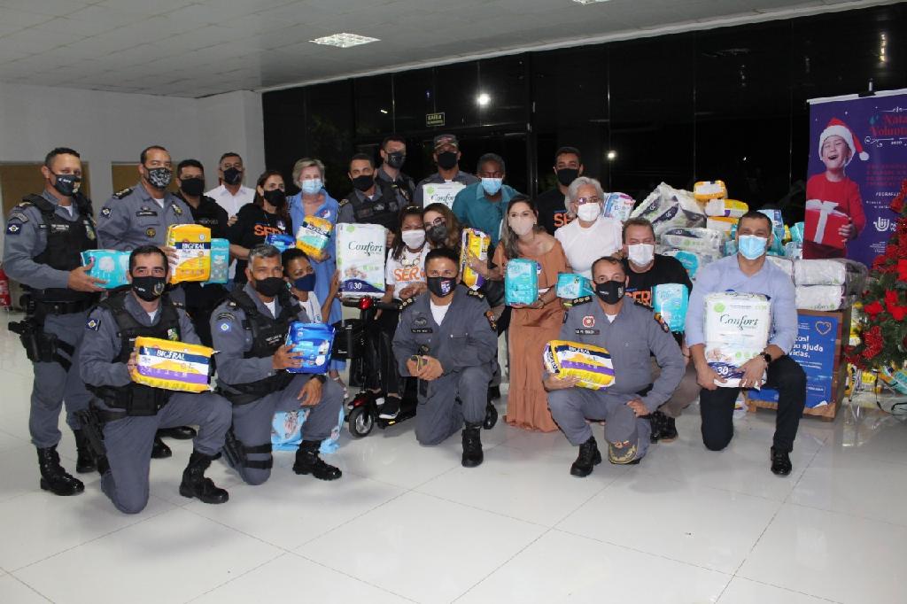 No início da noite de terça-feira (16.12), a primeira-dama Virgínia Mendes e o comandante da PM, coronel Assis, realizaram entrega das fraudas para Taís Augusta de Paula, da Superintendência Estadual da Pessoa com Deficiência, divisão da Casa Civil.
