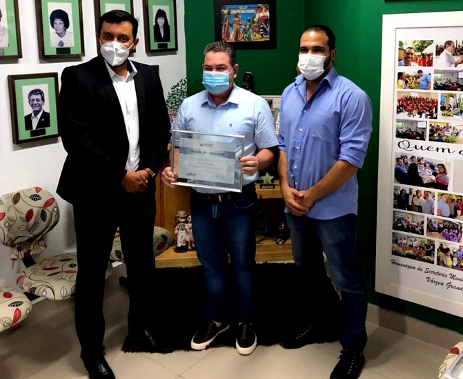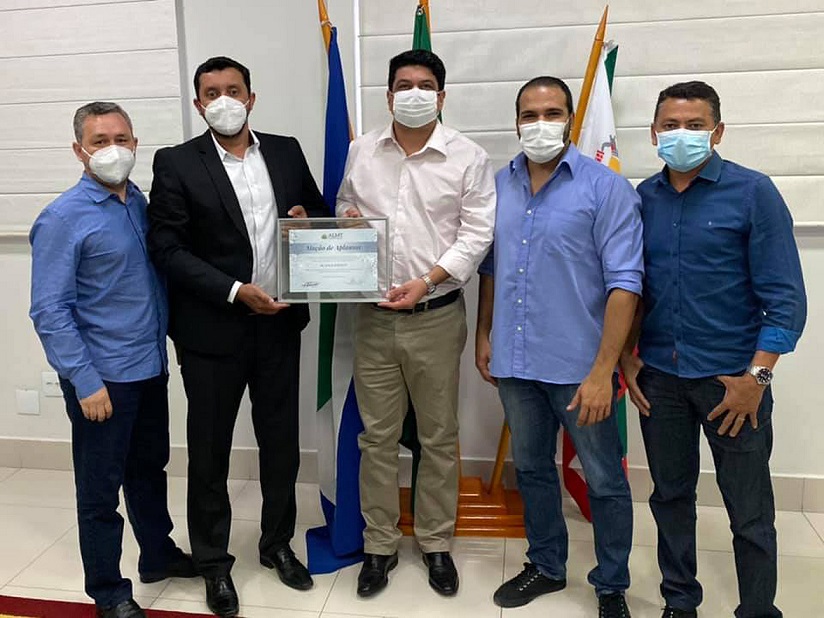 O prefeito Kalil Baracat e os secretários Silvio Fidelis, de Educação, Cultura, Esporte e Lazer, e Gonçalo de Barros, de Saúde, receberam reconhecimento público com Moção de Aplausos da Assembleia Legislativa de Mato Grosso (ALMT) pela eficiência na vacinação dos profissionais da educação de Várzea Grande. A homenagem foi requerida pelo deputado estadual Allan Kardec.