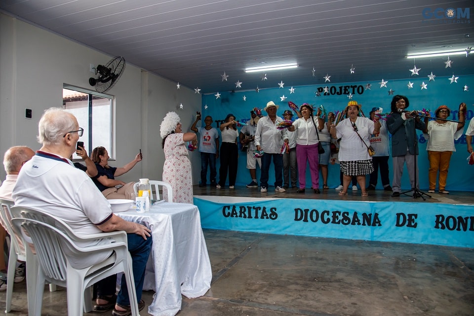 Residentes do Recanto dos idosos interpretando a música É preciso saber viver de Roberto Carlos