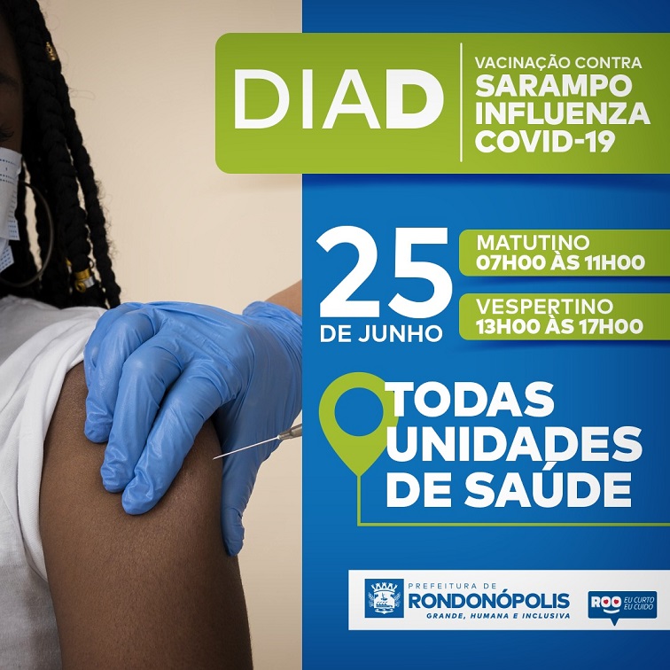 A Prefeitura de Rondonópolis realiza neste sábado (25) o ‘Dia D’ de vacinação contra Influenza, Sarampo e Covid-19 e convoca os munícipes que ainda não foram imunizados dentro dos grupos alvos para se imunizarem.