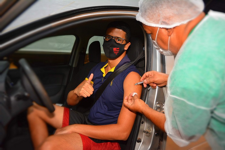 A vacinação, das duas doses, foi dividida entre o parque municipal Bernardo Berneck, o ginásio poliesportivo Fiotão e o Centro Universitário de Várzea Grande – Univag.