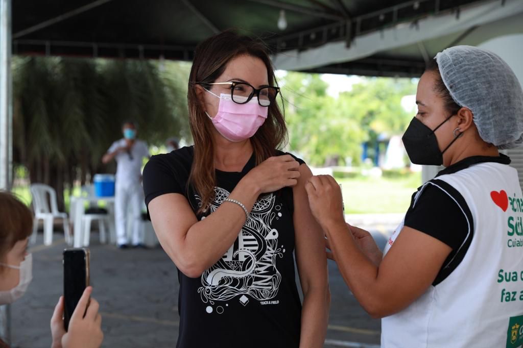 A primeira-dama de Mato Grosso, Virginia Mendes, levou a filha Maria Luiza, de 7 anos, para tomar a 1ª dose da vacina contra a Covid-19 na manhã desta quinta-feira (10.02), no polo de vacinação da Universidade de Cuiabá (Unic – Beira Rio). Como é transplantada e faz parte do grupo de risco, ela aproveitou para receber a 4ª dose da vacina.