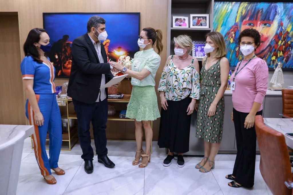 A primeira-dama Virginia Mendes conheceu, nesta quarta-feira (01.09), os projetos desenvolvidos pelas pesquisadoras Mayara Peron, da Universidade Federal de Mato Grosso (UFMT), e Angela Rocha, do Instituto Federal de Educação, Ciência e Tecnologia de Mato Grosso (IFMT), contemplados no edital ‘Mulheres e Meninas na Computação, Engenharias e Ciências Exatas e da Terra’, da Fundação de Amparo à Pesquisa (Fapemat).