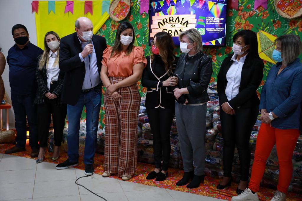 A primeira-dama do Estado, Virginia Mendes, através da Secretaria de Estado de Assistência Social e Cidadania (Setasc), fez a entrega de 800 cestas básicas do programa “Vem Ser Mais Solidário” para a Secretaria Municipal de Santo Antônio de Leverger, nesta quinta-feira (01.07). Os alimentos foram doados para famílias atendidas pelo Centro de Referência de Assistência Social (Cras). A cerimônia da entrega das cestas básicas também marcou o retorno do atendimento da unidade.