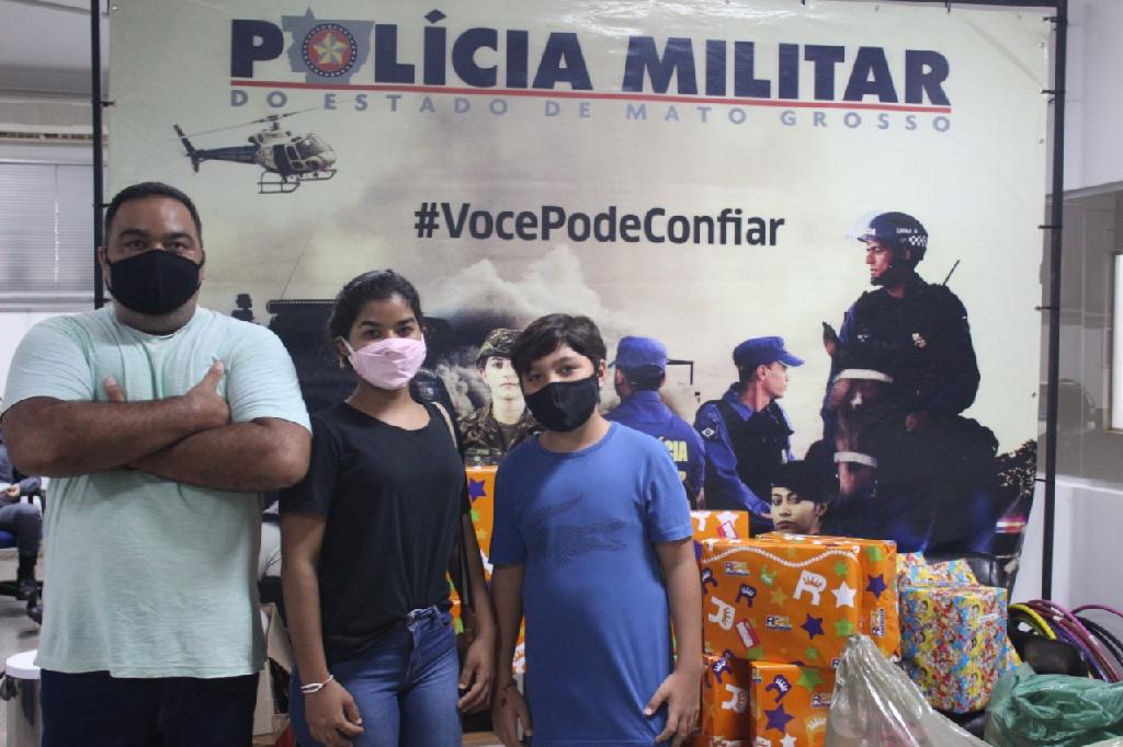 A capitã Raissa também recebeu no QCG o servidor público Fábio. Acompanhando dos filhos Pedro e Flávia, Fábio entregou presentes para a operação social em nome do deputado estadual João José.