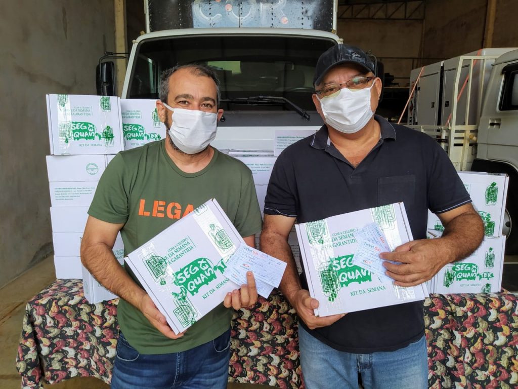 A empresária Duda Aguiar foi responsável em receber as cestas de carne e os vales gás, que foram disponibilizadas a sua equipe de garçons e ajudantes de cozinha terceirizados que atuam em seu buffet.